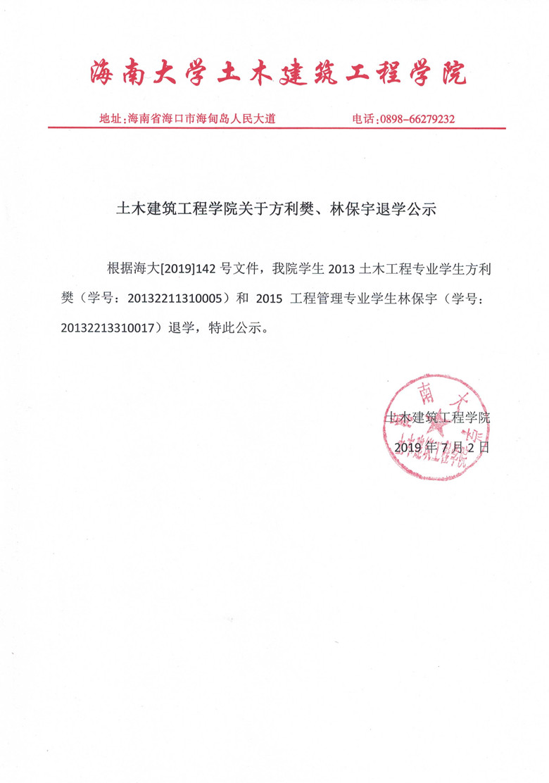YABO鸭脖关于方利樊、林保宇退学的公示
