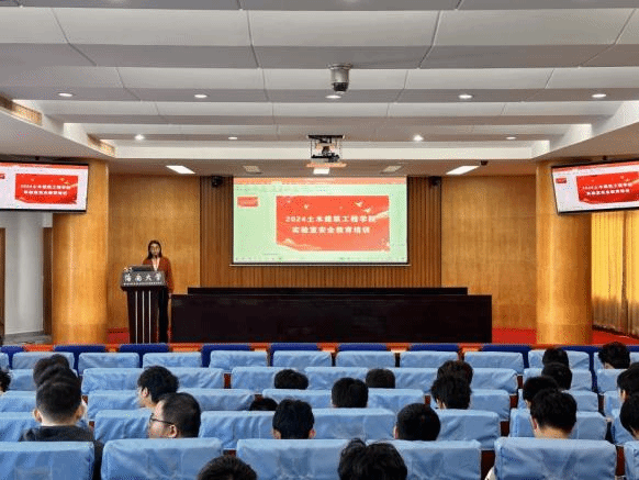 实验室与设备管理处谢天宇老师为在座师生播放了实验室安全教育警示片。随后,杨海峰副处长简要介绍了近期学校实验室安全工作基本情况,指出实验室安全不仅关乎个人安危,更关系到整个实验室的运行和科研工作的顺利进行,建立健全的安全管理制度、加强监督检查、树立安全意识是确保实验室安全的三大关键措施。