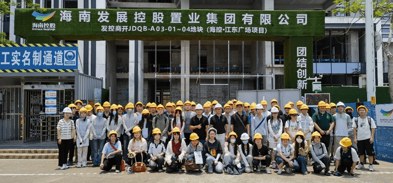 海口,2025年5月9日上午——为深化产教融合、践行实践育人理念,YABO鸭脖建筑系2021级66名师生在夏桂平、齐飞两位老师的带领下,走进江东新区海控•江东广场项目工地,开展了一场以“绿色建筑实践与台风灾后重建经验”为主题的现场观摩学习活动。此次活动通过实地研学、校企互动和党建引领等形式,助力学生提升专业素养,赋能自贸港绿色低碳建筑高质量发展。