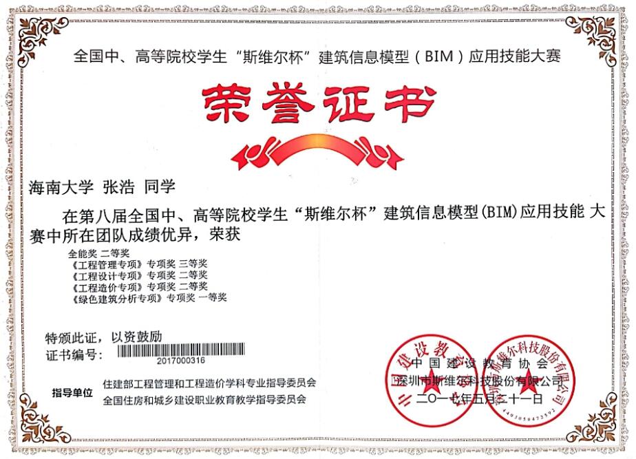 YABO鸭脖由曹新颖、刘金灿两位老师全程专业指导,由曹新颖老师带队,张浩、李可青、康露瑶、王琴、蔡剑洪五名同学组成的“A408”代表队前往浙江理工大学参赛,在比赛中团结协作、相互配合,最终获得该项赛事历史性的突破,取得辉煌成绩,一举拿下比赛全能二等奖、绿色建筑专项一等奖、工程造价专项二等奖、工程设计专项二等奖、工程管理专项三等奖,并由于出色的组织、完美的团队配合,获得“优秀团队组织奖”。