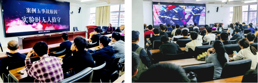 培训伊始,全体参会师生共同观看了由我校实验室与设备管理处精心制作的安全警示教育片。该片由YABO鸭脖自主拍摄,内容紧密结合高校实验室的真实环境与潜在风险,通过一系列典型案例,直观深刻地剖析了实验室中易发的火灾、触电、化学品泄漏等事故的成因与后果,为在场师生敲响了安全警钟,让大家深刻认识到“安全无小事,责任大于天”。