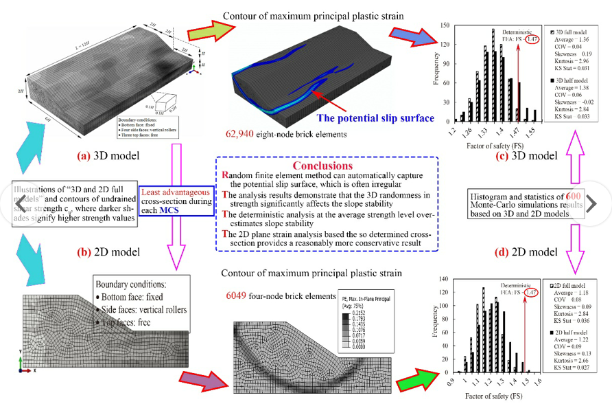 此次与新加坡国立大学合作,主要目标是引进该校团队研发的大型三维随机有限元这种新方法,并与该团队合作进行现场试验,以完善并发展该方法。同时,在该方法的基础上,应用大型三维随机有限元,对深基坑开挖、隧道开挖、边坡防护等进行数值模拟,对这些工程中地基处理后土的强度进行评估,从而给工程设计提出较为科学的建议与改进。