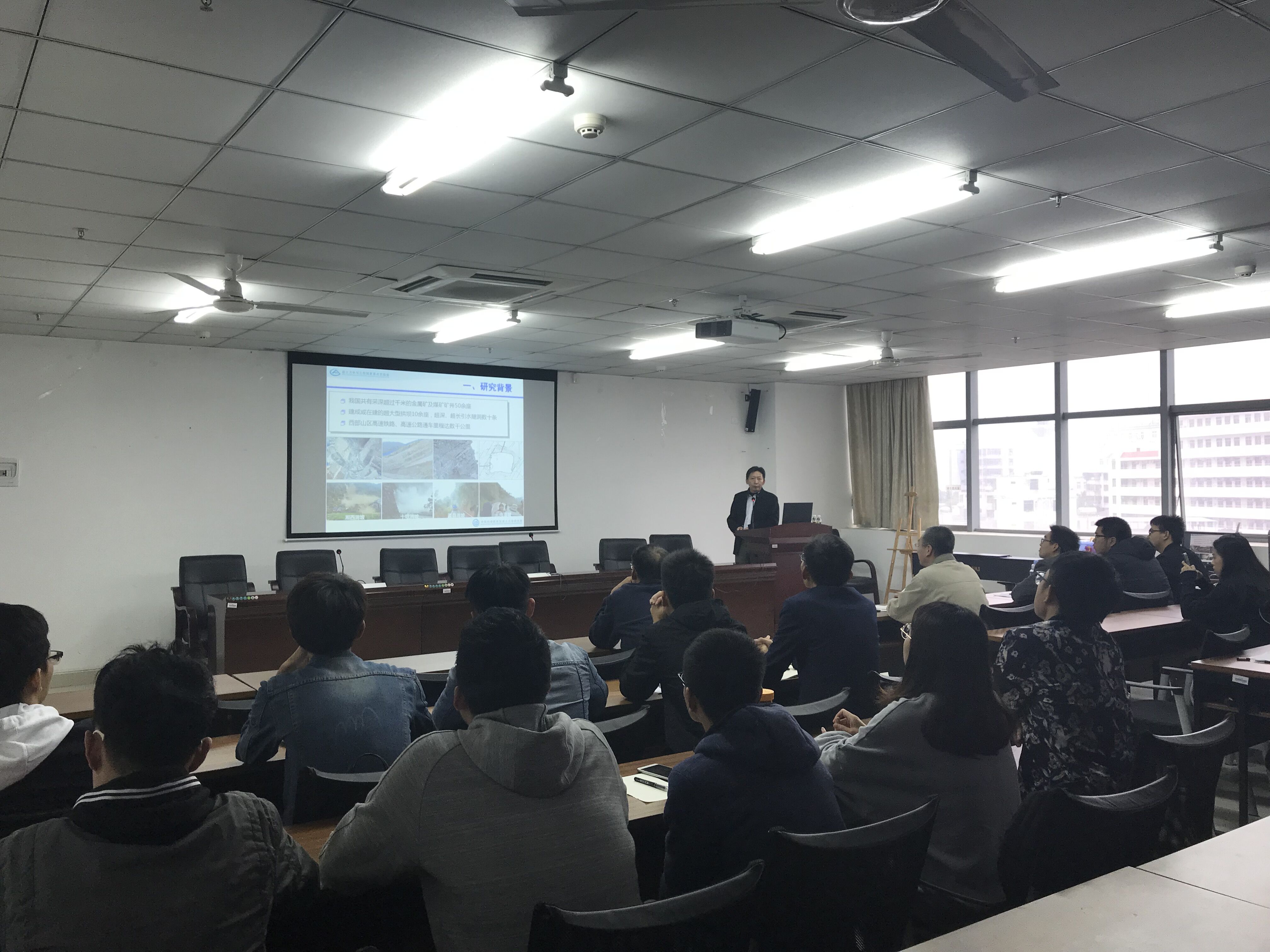 作为岩土工程领域顶级中文期刊《岩石力学与工程学报》的编辑部主任,刘才华研究员对“《学报》概览及学术论文撰写过程中的常见问题”这一专题作了详细介绍。强调学术论文务必注重“新”,即在理论、应用上应有所创新,随后针对摘要、前言、本论、结论等环节对学术论文的写作技巧进行了讲解,提出了常见问题的写作建议。最后的提问环节,刘才华研究员针对同学们提出的问题一一给予了生动细致的解答。