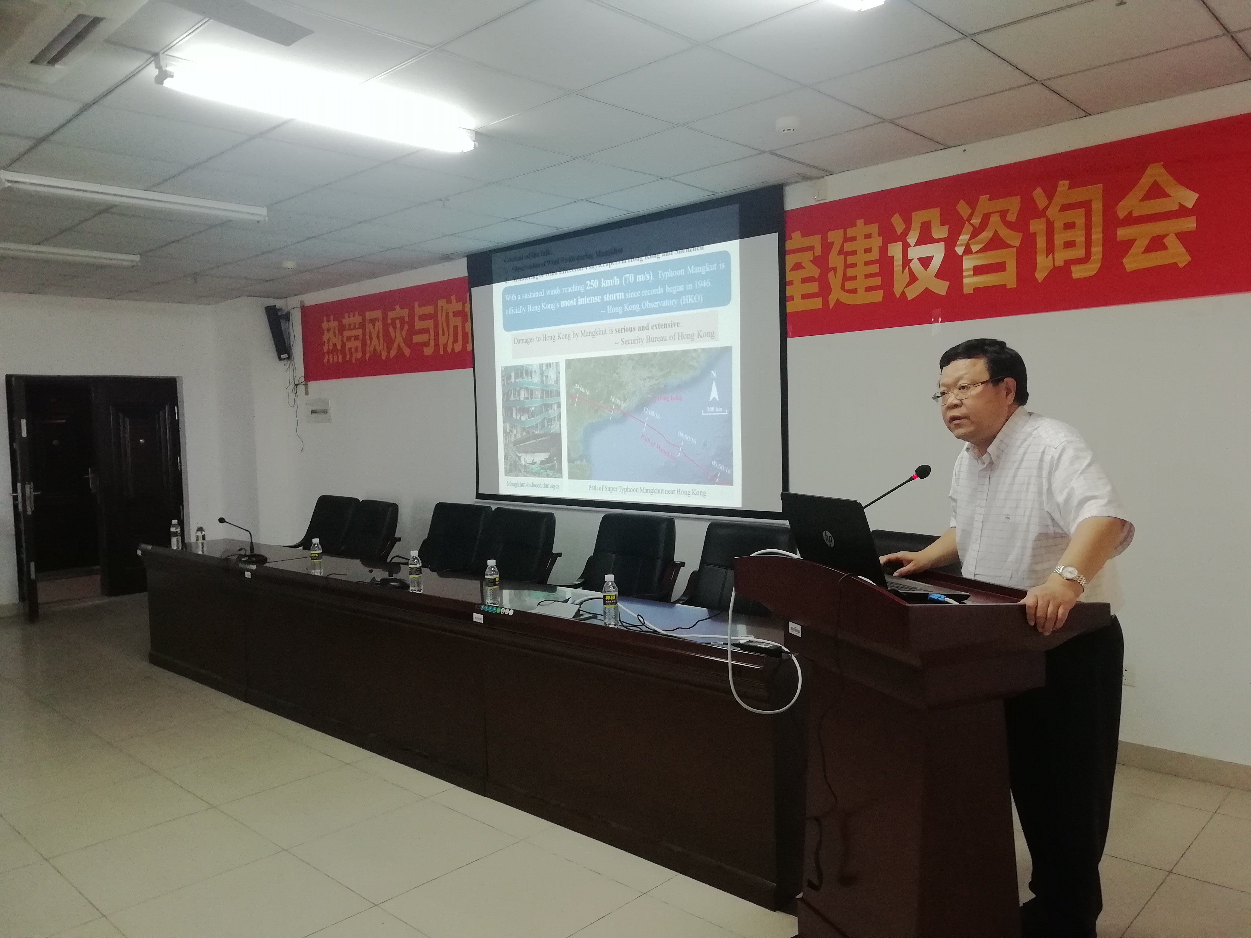 李秋胜教授作了题为《超强台风山竹的风场及对超高层风效应的实测研究》的报告。报告介绍了利用气球等多种探测设备对超强台风“山竹”所开展的风场监测,精准分析了台风‘山竹’登录前、后风场结构的变化特征及强台风作用下香港和深圳等地多栋超高层建筑的风致响应。