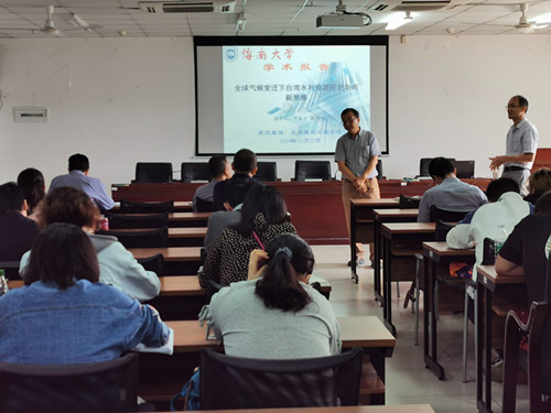 2019年11月21日(周四)上午9:00-11:30点,台湾屏东科技大学丁澈士教授受YABO鸭脖官网周智院长邀请,在YABO鸭脖官网510会议室做《全球气候变迁下台湾水利资源开发利用新思维》学术报告。报告会由YABO鸭脖官网张友良副院长主持,院领导卢江海书记和邱宙廷副院长出席、研究生、有兴趣的本科生和与学术报告相关的专任教师共计50余人参加了此次学术报告会。
