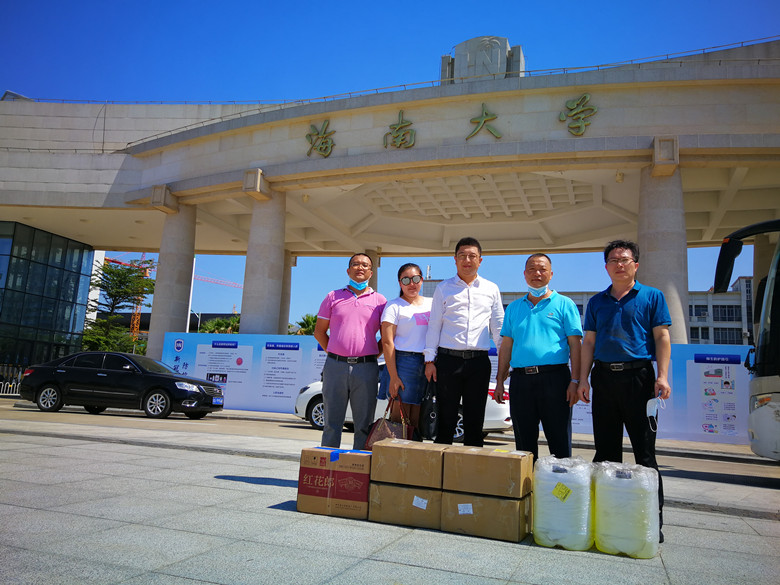 5月7日,上午10:00,YABO鸭脖官网2007届校友王大伟总监代表恒大海花岛有限公司,向YABO鸭脖捐赠防疫物资1800个医用口罩、2箱免洗消毒液,10桶消毒液,助力YABO鸭脖官网打赢新冠肺炎疫情防控阻击战。
