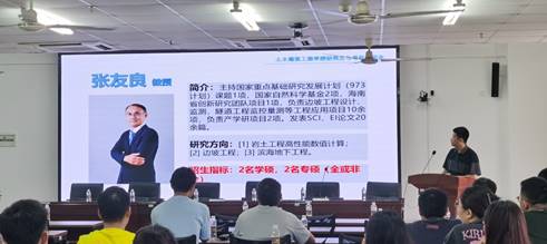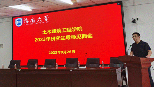 辛大波副院长首先对2023级研究生新生的到来表示热烈地欢迎,并介绍了召开这次会议的背景,对2023年学院研究生导师硕士生指标分配、研究生与导师双选的程序和办法等进行了传达。研究生院副院长刘婉秋介绍了学院研究生的招生和培养情况,并介绍了热带海岛工程建造与运维创新团队的基本情况。