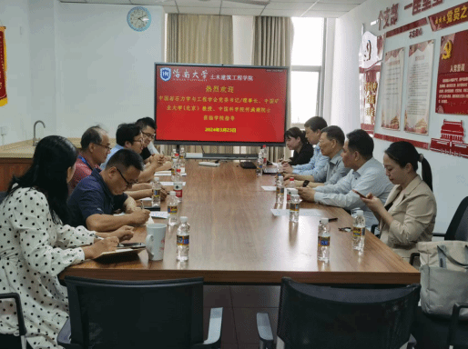 座谈会前,何满潮院士一行参观了学院实验室,并对实验室建设提出了一些有益建议。参加座谈交流的还有学院副院长张友良、辛大波、陈云、薛春霞和教师代表,座谈会在研发楼518室召开。