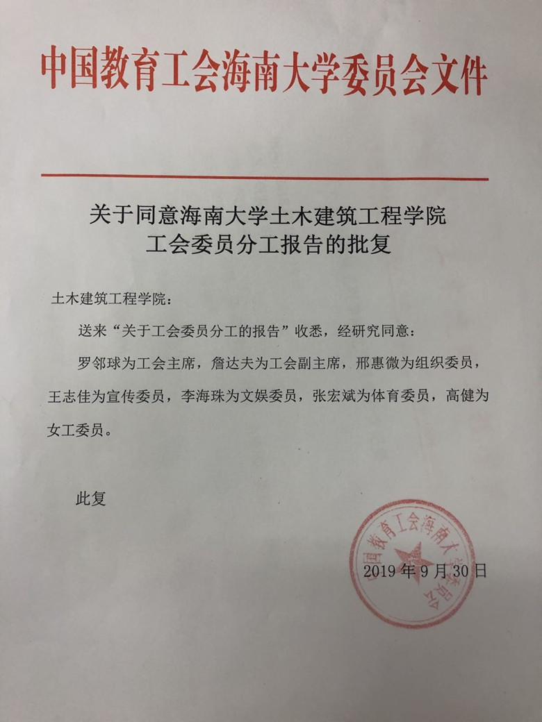 中国教育工会YABO鸭脖委员会关于YABO鸭脖工会委员分工的批复