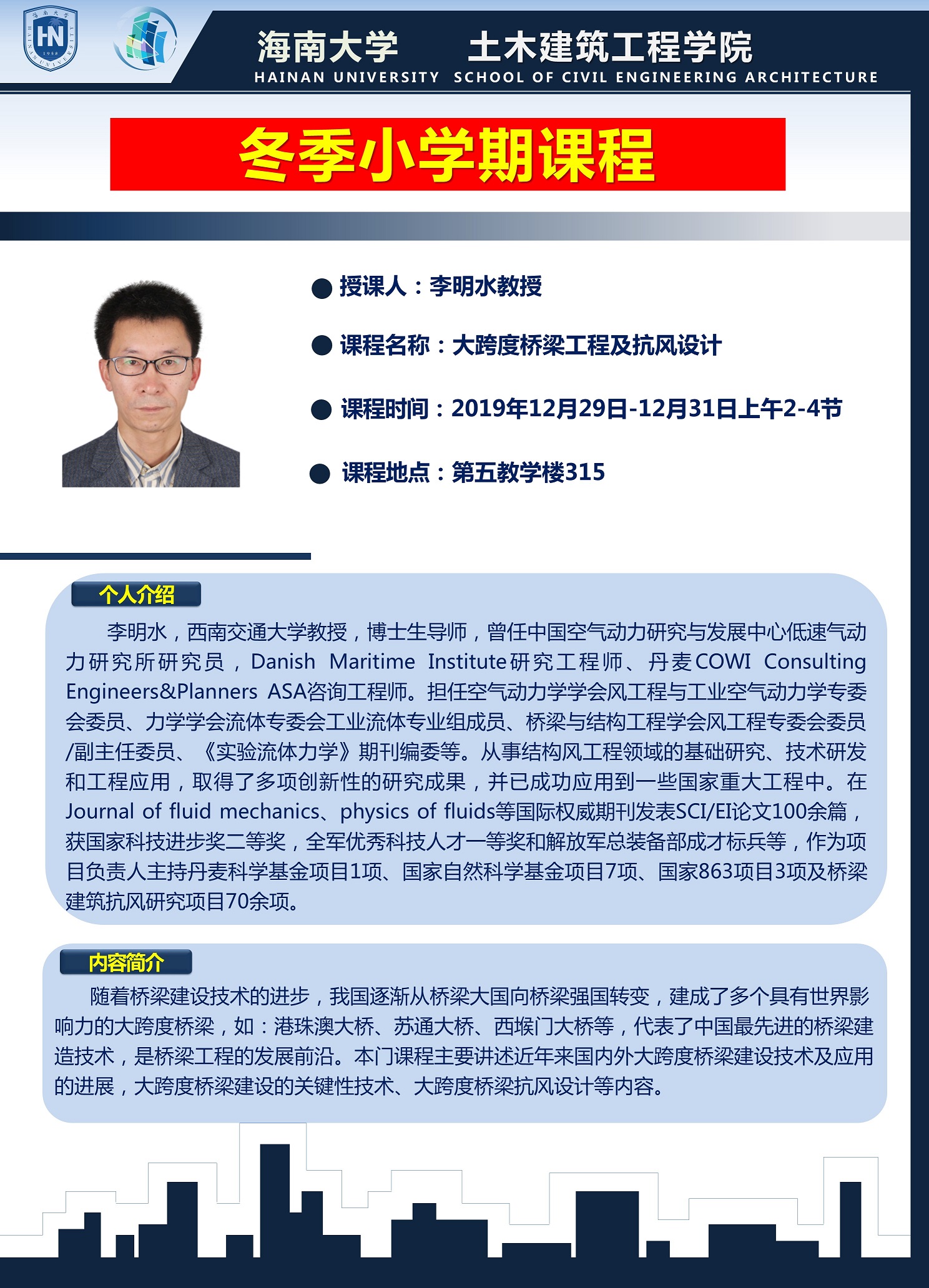 李明水教授冬季小学期海报