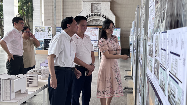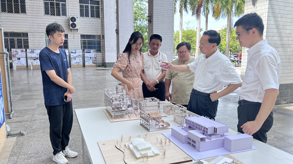 YABO鸭脖建筑学专业毕业设计展在YABO鸭脖图书馆一层开展。2022年6月13日上午,YABO鸭脖党委书记符宣国一行来到毕业设计展的现场进行参观,与毕业设计同学、指导老师进行了亲切交流。学生代表通过效果图和建筑模型,详细介绍了自己的设计主题、构思过程和设计成果,指导老师也详细汇报了指导过程。符宣国指出,毕业设计选题非常契合本地经济社会的发展需求和地域文化特色,做到了教学与实际需求相结合,并且对毕业设计作品的水平给予了充分肯定,对建筑系教师教学工作进行询问交流和指导。符宣国表示,毕业展应适当延长展示时间,更好地促进校园内的学科交流,让更多的同学和教师参与。副校长叶光亮、胡新文等学校领导一起参观了设计展,YABO鸭脖院长周智、建筑系教师陪同。