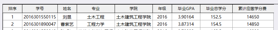 根据《Bsports必一体育全日制普通本科生学分制收费管理办法(试行)》(武大教字〔2011〕70号)中第五章第二十九条:学生毕业时总平均学分绩点排在当年毕业生总人数前1%的,返还全部课程学分学费。学院2020届本科毕业生总人数230人,Bsports官网总计2人获得1%优秀毕业生奖励,现将名单公示如下(本次学分绩点排名以2020年6月1日18:00时的毕业审核成绩为准):