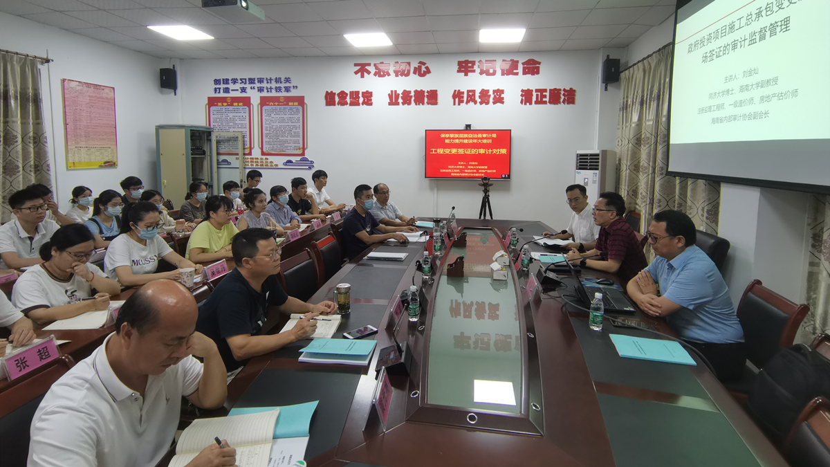 6月9日下午,在保亭县审计局会议室,二十余人参加讲座活动。政府投资项目的工程结算超设计概算是普遍存在的问题,如何消除?办法很多,而其中管控工程变更是一个非常重要的环节。刘金灿老师针对工程审计业务的工作需要,并且结合业务干部的实际知识背景,选择《政府投资项目施工总承包变更及现场签证的审计监督管理》为讲座的主题,系统的讲授了政府投资工程建设活动的特点、工程变更的内涵及类型、工程变更问题审计治理对策。讲座结束,刘老师与审计局领导、干部互动热烈。审计局干部提出了工作中存在的疑难问题,刘金灿老师逐一解答。审计局局长陈斌表示,讲座就像及时雨,让审计局干部增长了知识,开阔视野,提高了大家分析问题、解决问题的能力,刘金灿老师深厚的理论底蕴、丰富的工程实践经验,令人印象深刻。YABO鸭脖与保亭县审计局于2021年5月份订立合作协议,并且开展了实质性合作。审计局委托学院,针对保亭县政府投资工程项目实际情况,开展“施工总承包模式下工程变更及现场变更签证问题的审计治理研究”。