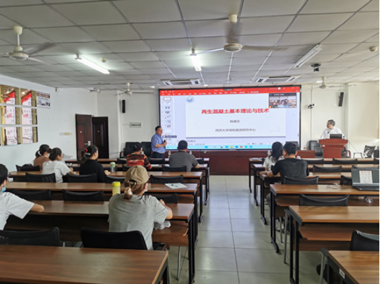 肖建庄教授的报告分别从混凝土再生原则与方法、再生混凝土制备理论、再生混凝土的创新发展、再生混凝土的应用准则、再生混凝土的专委会十年回顾几方面进行了介绍,并分享他们团队在建筑工程行业方面所取得的科研成果及应用。他建议我们在今后设计建筑工程时,一定要从安全性、经济性、低碳性三方面考虑。报告结束后,肖建庄教授就师生感兴趣的问题进行了解答。