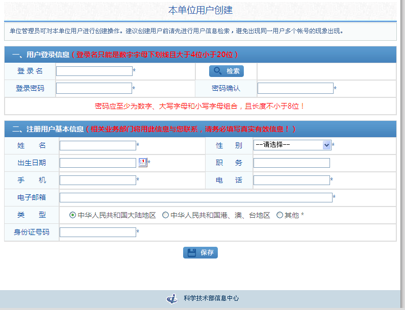 4.专家收到账号后,应及时登录国家科技专家库服务系统(http://expert.most.cn),充实完善个人信息,并提交单位审核备案。