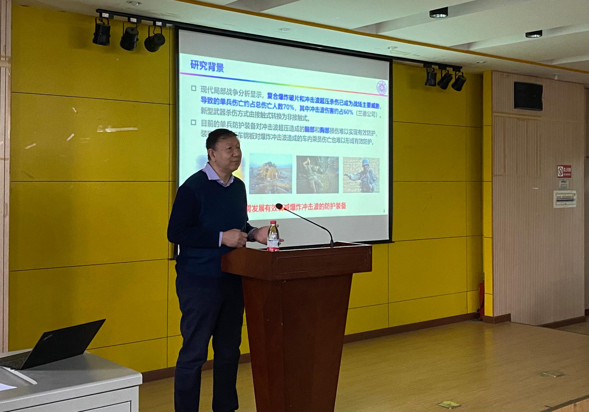 12月3日下午4:00-5:30,在力学楼四楼报告厅,庄茁教授以“爆炸冲击波人体致伤机理与防护技术”为题,为Bsports官网百余名师生做了精彩的学术报告。在报告中,庄茁教授分别从爆炸冲击波致伤机理、衰减冲击波能量的多尺度材料设计与分析、新型复合材料防护性能的系列实验验证等方面,系统地介绍了相关研究的最新进展,并展望了新型防护材料的发展方向和亟需解决的关键科学问题。报告内容条理清晰、逻辑严密、语言风趣。在互动环节中,现场师生踊跃提问,庄茁教授一一详细解答。