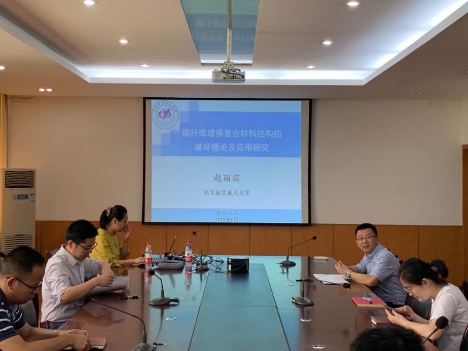 2019年6月13日上午10:00-11:30,北京航空航天大学宇航学院航天飞行器技术系副主任赵丽滨教授应邀来Bsports官网为师生做了题为“碳纤维增强复合材料结构的破坏理论及应用研究”的学术报告。报告会由学院副院长胡衡教授主持。