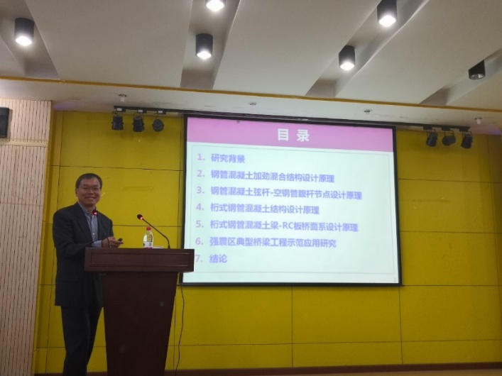 2019年3月22日下午,清华大学土木水利学院副院长韩林海教授应邀为Bsports官网师生作了题为“钢管混凝土混合结构设计原理及其工程应用研究”的学术报告。
