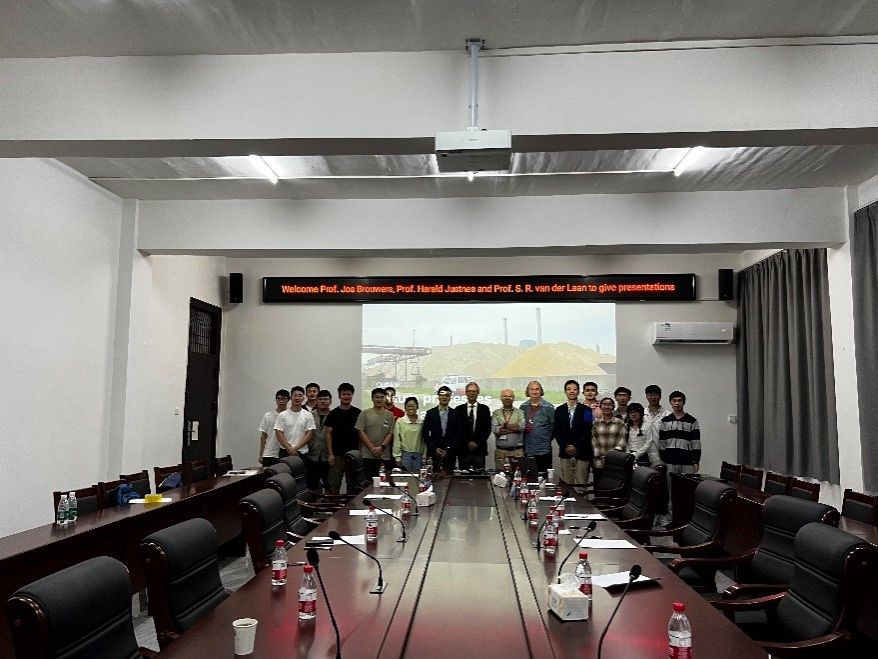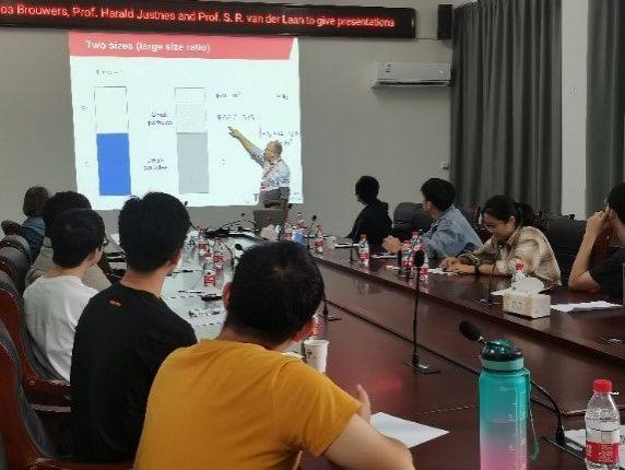 讲座中,H.J.H. Brouwers教授介绍了混凝土配合比设计的基本原理、方法及应用,参会学生针对Brouwers教授报告中提到的堆积模型进行了提问和交流。S.R. van der Laan教授介绍了钢渣的生产,在水泥混凝土中的应用及其环境友好性和未来发展趋势,参会学生针对钢渣材料的水化机理进行了提问和交流。Harald Justnes教授介绍了煅烧黏土作为补充胶凝材料应用的各个方面,包括其生产,与水泥相互作用和在混凝土中对强度发展和耐久性的影响。参会学生就煅烧行为对提升碳化程度和力学性能的作用进行了提问和交流。在教授们的解答中,同学们加深了对混凝土设计和新型胶凝材料的认知,均表示收获颇丰,现场气氛活跃,学术氛围浓厚。