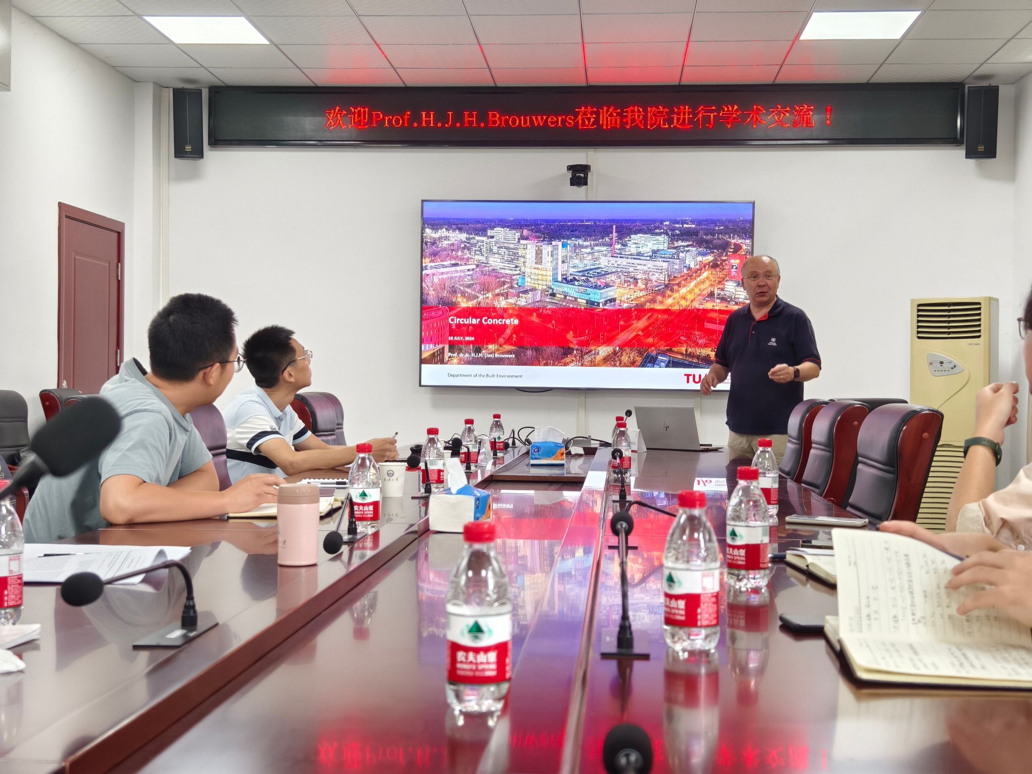 2024年7月15日中午,应Bsports必一体育于清亮教授邀请,荷兰埃因霍温理工大学H.J.H. Brouwers教授开展了主题为“Circular Concrete”的学术报告。