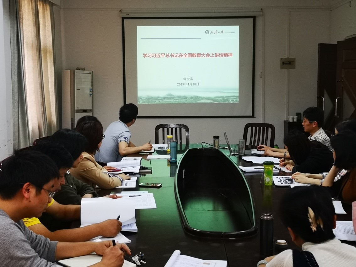 学院党委书记雷世富带领大家学习了习近平总书记在全国教育大会上讲话精神。雷书记重点介绍了习近平总书记关于我国教育事业规律性认识与办学经验以及培养什么人、如何培养人这两个方面的论述。认清教育事业的规律就是要做到“九个坚持”,即坚持党对教育事业的全面领导、坚持把立德树人作为根本任务、坚持优先发展教育事业、坚持社会主义办学方向、坚持扎根中国大地办教育坚持以人民为中心发展教育、坚持深化教育改革创新、坚持把服务中华民族伟大复兴作为教育的重要使命、坚持把教师队伍建设作为基础工作。怎样培养人要做到“六个下功夫”,即要在坚定思想信念上下功夫、要在厚植爱国主义情怀上下功夫、要在加强品德修养上下功夫、要在增长知识见识上下功夫、要在培养奋斗精神上下功夫、要在增强综合素质上下功夫。