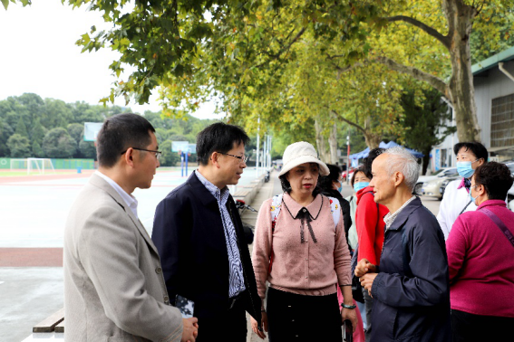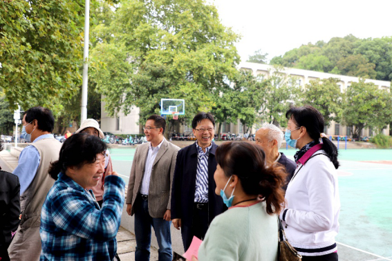 在聚齐后,离退休教职工们一同向鲲鹏广场进发。一路上,老同志们三两成群、精神抖擞,现场组织有条不紊,队伍氛围亲切温馨,大家锻炼身体、追忆往昔,好不热闹。参加此次活动的志愿者不禁感叹:“真没想到可以在老师身上感受到这样的活力!”