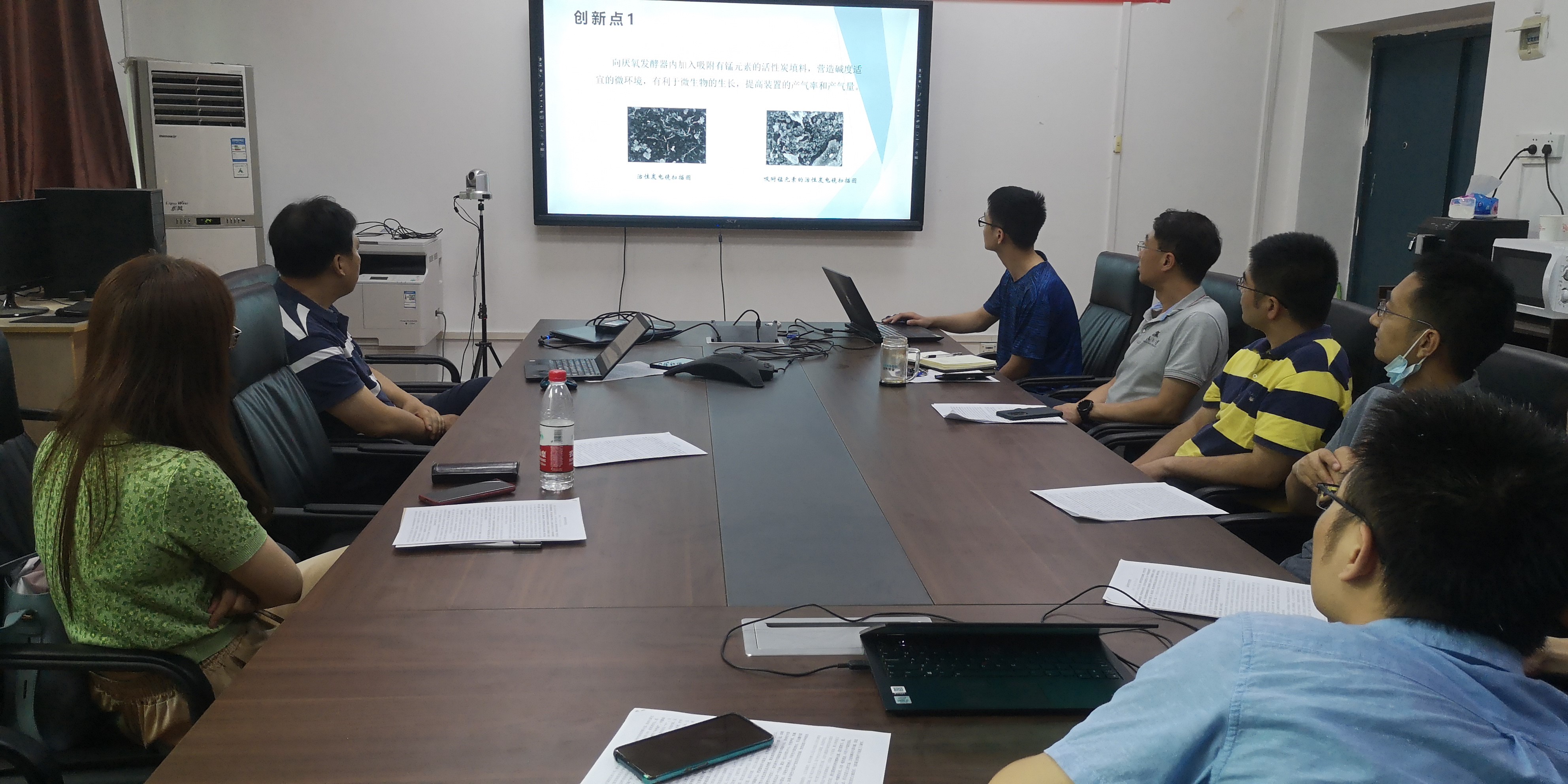 第一组同学展示的是微排放高效厌氧餐厨垃圾处理装置,旨在通过装置将参与垃圾、养殖废水等处理成为可直接回收利用的一级B标水。