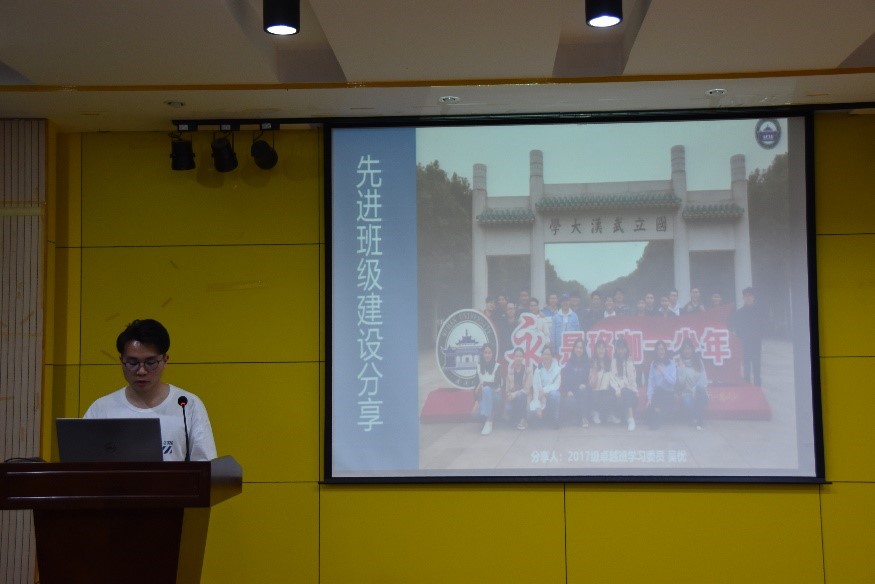培训会第三项,由2017级土木工程卓越工程师班学习委员吴优做了典型发言。吴优同学从“以学为优、营造良好学风,共创优异成绩”、“投身科学研究,展翅学科竞赛”、“重视思想引领,强化组织建设”、“文体起奋进,青春伴我行”四个方面,分享了班团工作经验和取得的成绩。吴优同学也表示,学生干部要积极提升自己的修养,端正工作作风,积极融入到同学中去。