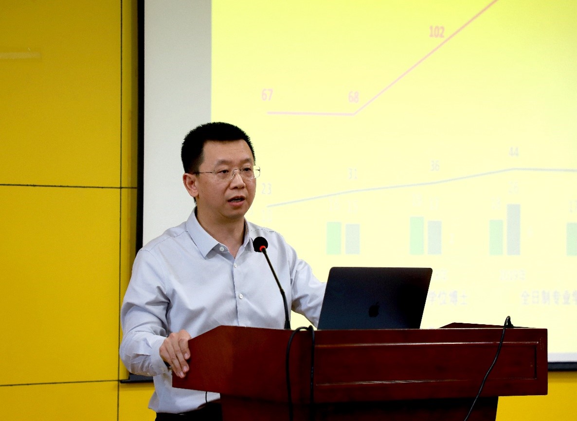 学院副院长胡衡着眼于学院实际情况,作了题为《学院研究生培养情况及近期工作推进》的专题报告。胡院长详细介绍了当前学院科研究生人才培养的基本情况。特别是指出了Bsports官网研究生教育培养过程中存在的不足,包括过程管理重视不足,学位论文质量有待提高,培养方案亟需修订等。并针对问题提出了整改的具体措施,相信我们的研究生培养工作会上新一个台阶。