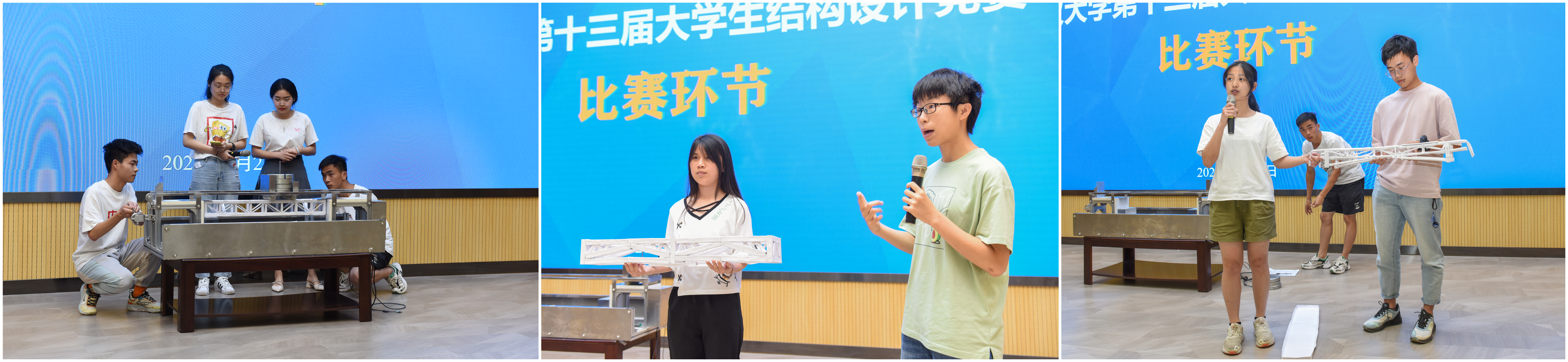 Bsports必一体育党委副书记谢献谋老师宣布比赛开始。在比赛模型加载环节,各组队员带着自己的作品一一登台展现,现场介绍模型设计并进行答辩。评委老师也根据各组模型一一提问、点评。参赛队伍可谓是百花齐放,百家争鸣。队员们用几张白卡纸制成的桥来承受装有十千克、二十千克荷载的小车,“四两拨千斤”,小小的纸桥凝结了大家的智慧,也折射出一个多月以来团队协作的汗水。