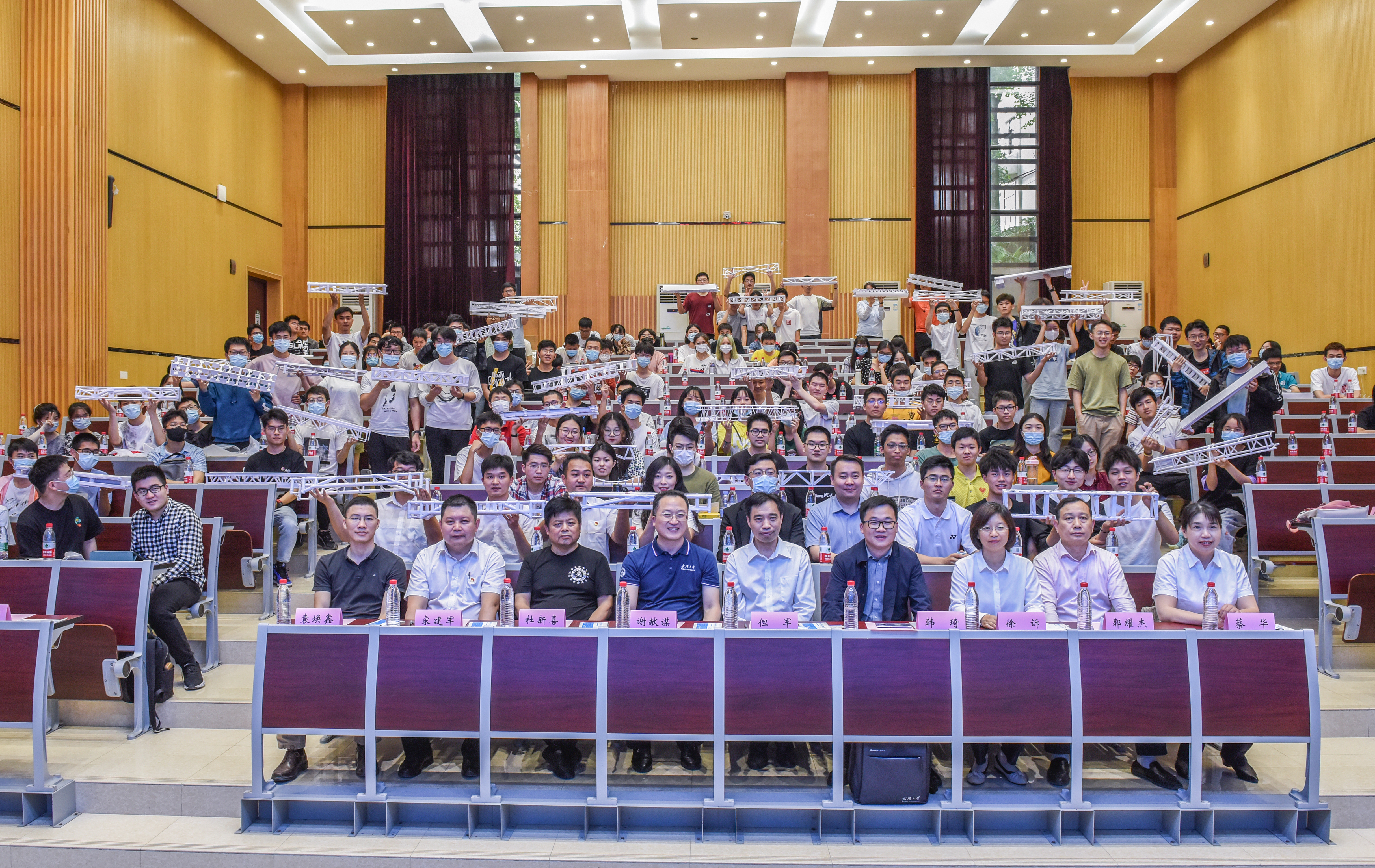闭幕式上,评委代表杜新喜教授对赛事进行总结点评。杜老师为现场观众分析了荷载和最佳桥梁结构,为参赛队伍提出了宝贵意见,鼓励同学们积极参加竞赛,将团队合作的精神发扬光大,将动手能力和创新意识结合。本次比赛共产生一等奖3队,二等奖4队,三等奖8队。