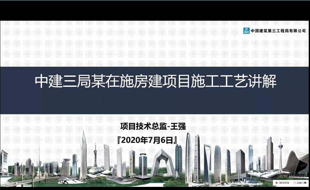 为继续贯彻学校“停课不停教、不停学”的有关要求,保证学生按时完成本学期的学习任务,经学院商议决定,2017级土木工程专业生产实习采取线上授课的方式进行。7月6日上午9:00,第三次工程施工专题讲座在QQ线上平台进行。本次专题讲座邀请了中国建筑第三工程局有限公司的项目技术总监王强为大家进行房建项目的施工技术与经验的分享,讲座主题为“中建三局某在施房建项目施工工艺讲解”。