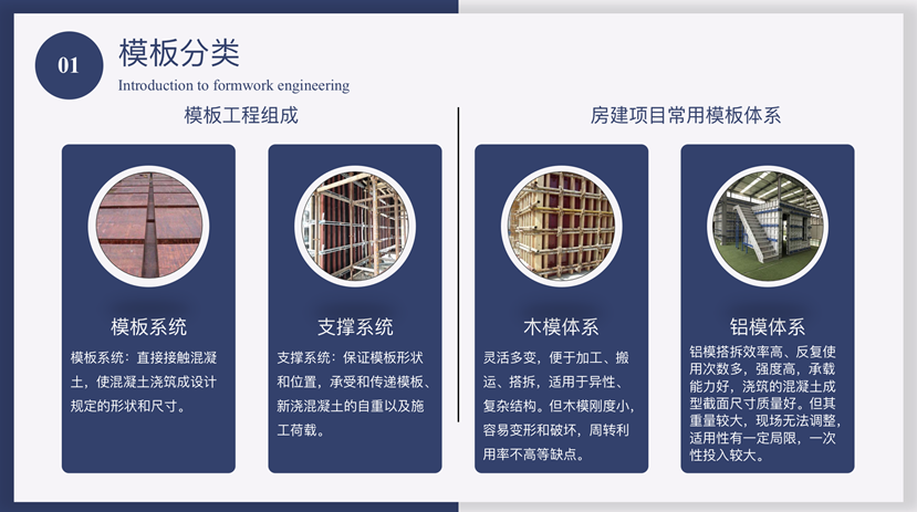 焦鹏工程师先大概介绍模板工程的分类以及使用要求,然后对房建项目常用的模板体系中的木模体系和铝模体系进行详细介绍。在选用模板体系的时候焦鹏工程师强调模板必须保证成型质量、安全和经济性。