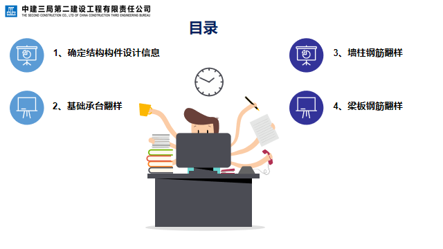 申伟高工先从“什么是钢筋翻样”“钢筋翻样对从业人员的要求”“钢筋翻样的工具进化”入手,让同学们对“钢筋翻样”这一新名词有了基础的认识。紧接着从确定结构构件设计信息、基础承台翻样、墙柱钢筋翻样和梁板钢筋翻样四部分展开,为大家详细介绍钢筋翻样技术在工程中的具体应用。