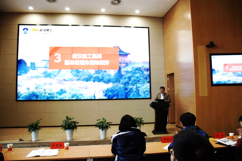 武汉建工集团股份有限公司副总经理朱朝峰介绍了武汉建工集团的主要业务与成就,他强调集团将在人才培养、人才引进、岗位实践、设计研究和学术交流等方面与各高校开展深入合作,为大学生提供实习实践平台,帮助大学生将理论与实际相结合,全面提升学生的实践和创新能力。