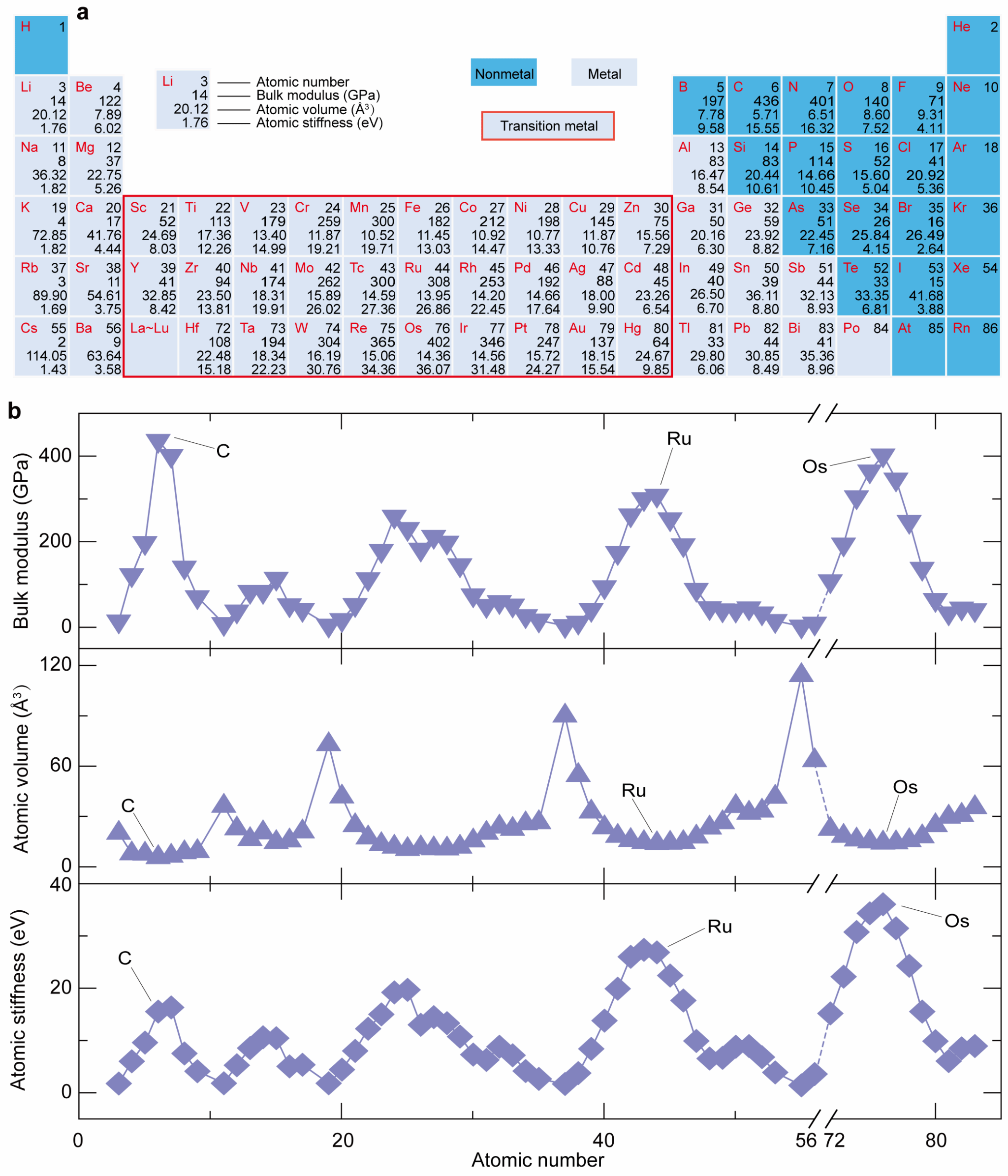 近期,《自然·通讯》(Nature Communications)发表了Bsports必一体育副教授高恩来课题组关于原子刚度理论的研究成果 (图1)。相关研究提出了高效、准确、简洁、普适预测体积模量的原子刚度理论,指引从百万晶体结构中发现数十种体积模量媲美金刚石的新型晶体,大幅扩充了极不可压缩物质家族。