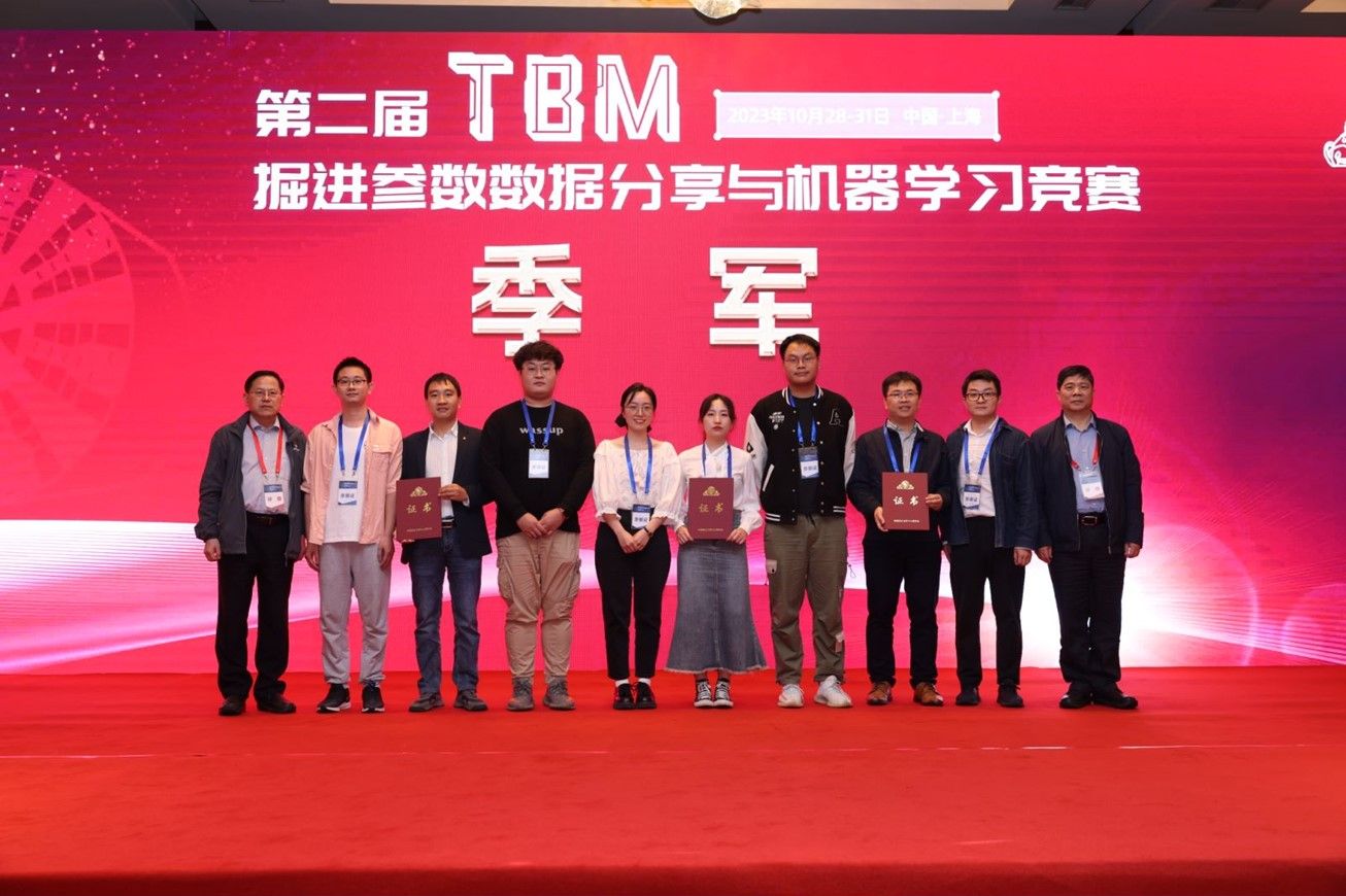 2023年10月31日,该课题组青年教师储昭飞副研究员和学生戴骞、吴优、张多、霍东波以及赵瑞峰等成员共同组成的参赛队伍荣获第二届中国岩石力学与工程学会“TBM掘进参数数据分享与机器学习竞赛”三等奖。此项竞赛依托我国“引绰济辽”工程现场数据,开展TBM围岩等级及掘进参数预测分析,共吸引了包括来自清华大学、上海交通大学和同济大学等在内的38支参赛队伍参赛。经过为期三天的入围赛、初赛和决赛等三轮激烈的比拼,参赛队伍提交的成果《基于TBM时序信息的围岩等级及掘进参数预测研究》在围岩信息智能判识和TBM掘进控制参数预测方面效果显著,最终脱颖而出,成为仅6项获奖项目之一(并列第4名)。陈祖煜院士全程参与组织本届机器学习竞赛,评委专家由钱七虎院士、朱合华院士和杜修力院士等行业内近30名资深专家学者组成。“TBM 掘进参数数据分享与机器学习竞赛”是中国岩石力学与工程学会主办的TBM机器学习方面唯一赛事,源于2019年陈祖煜院士在北京发起的“莲花池倡议”,目的是呼吁推进TBM掘进机数据标准化和数据共享工作,共同推动大数据和人工智能在掘进机行业的应用和发展。
