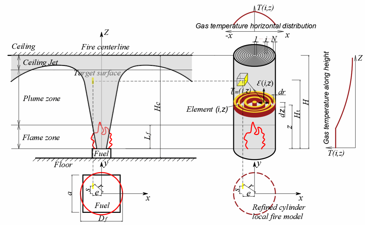 火灾是最频遇的灾害之一,其蔓延发展过程会危及工程结构的安全,可造成重大生命和财产损失,能对社会生产、经济和生活造成严重影响。工程结构遇到的火灾威胁可分为两类:室内火和开敞空间火。现有结构抗火设计方法是针对室内火,不适用于开敞空间火。目前尚缺少计算开敞空间火向任意位置处(全场)辐射传热的理论模型。魏俊杰基于经典火羽流和穿透型介质辐射传热理论,通过假设和理论推导得到火场对任意位置处水平目标面的角系数计算公式,提出并验证了可计算大空间火场向任意水平面辐射传热的理论模型。该工作需要扎实的传热学和火灾科学功底,对一个土木工程背景的研究者极具挑战。