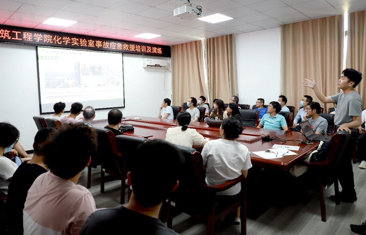 为了进一步提升学院师生的实验室安全意识,增强学院师生的化学类实验应急处置能力,保证教学和科研实验的安全开展,6月20日下午,学院在院办二会议室和给排水实验室开展了化学实验室应急培训与演练活动。此次活动由无锡赛弗安全装备有限公司培训部经理、无锡红十字会翟永志急救培训师主讲和指挥,全体实验室教学管理人员、市政系师生、学院涉及化学类实验的师生代表参加,活动由副院长肖娴娴主持。