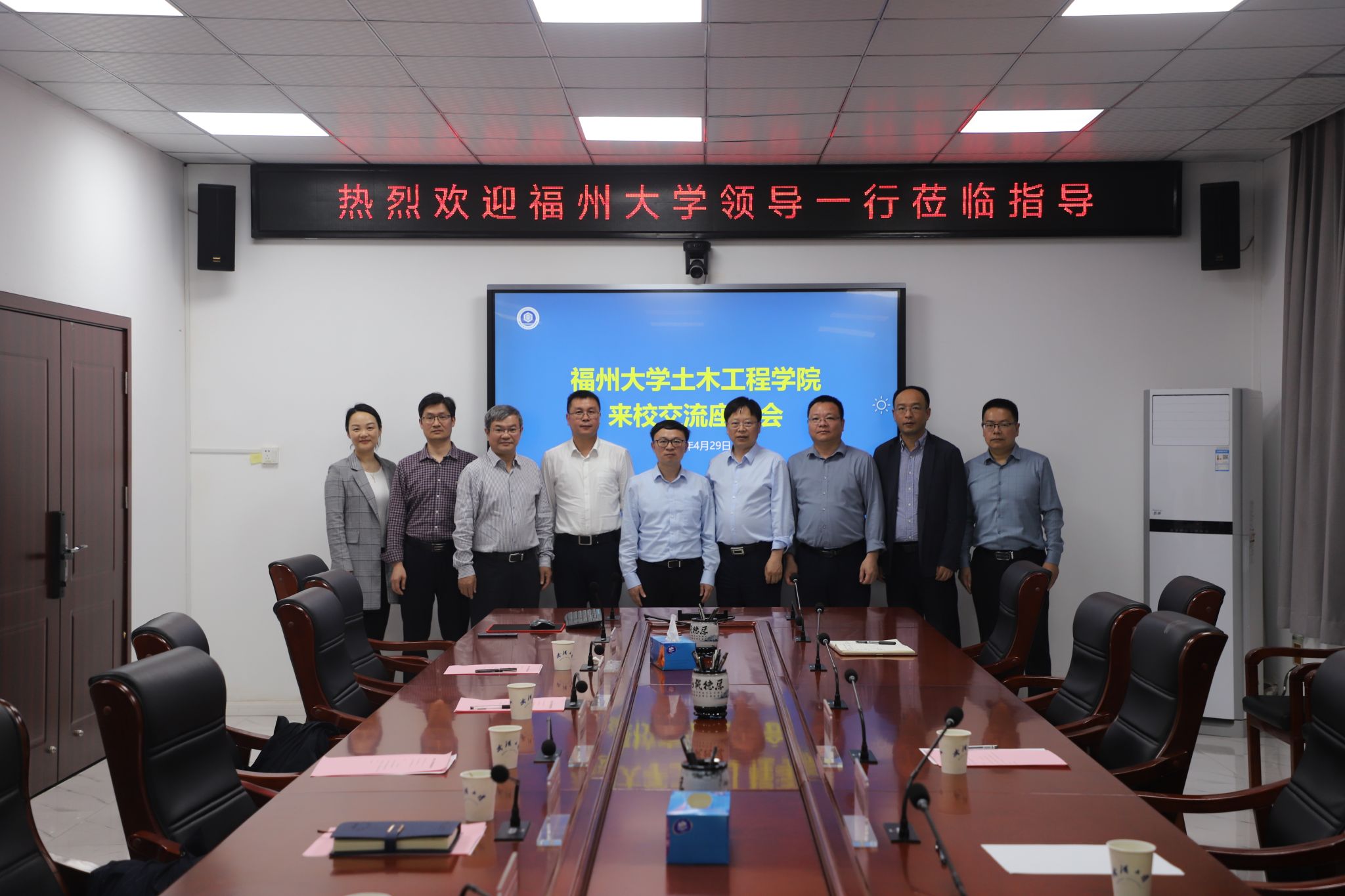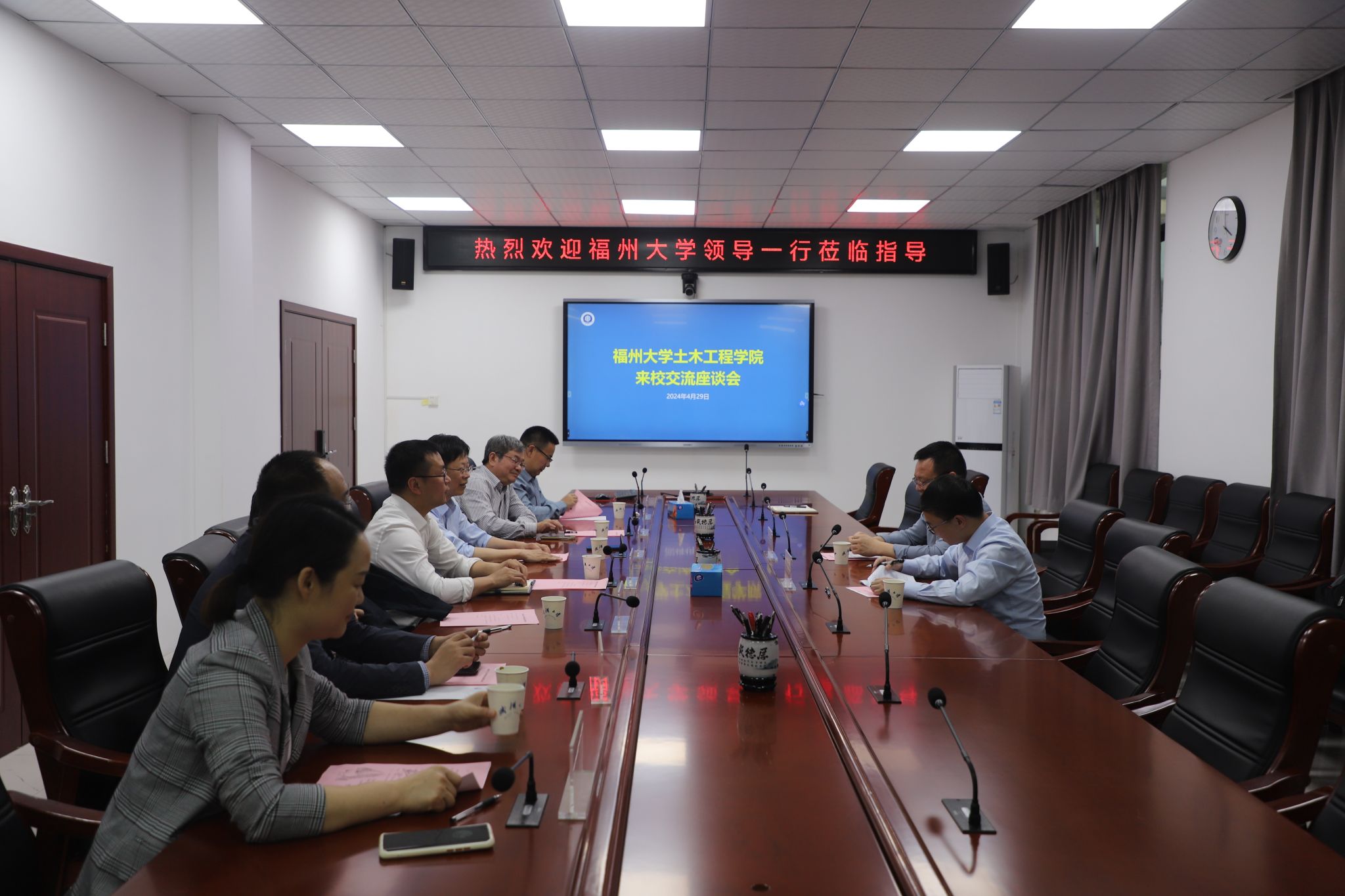 4月30日,福州大学土木工程学院科技处处长、土木工程学院院长赖志超、院长助理黄明一行来Bsports官网调研交流,学院党委书记杨旭、院长吴志军、副院长肖娴娴、教授委员会主任卢亦焱、工程力学系支部书记刘泽、岩土与道桥系主任章荣军、建筑工程系主任李杉参加座谈。