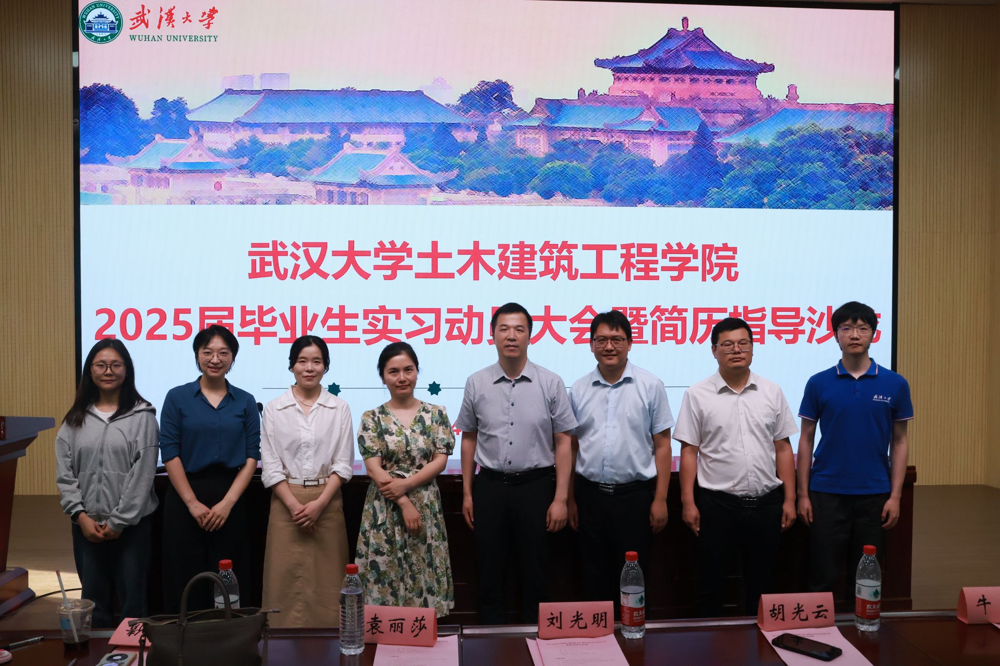 为拓宽校企联合平台,增强Bsports官网研究生就业竞争力,Bsports必一体育于5月14日下午在结构楼五楼报告厅举办了2025届毕业生就业实习动员大会暨简历指导沙龙活动。会议由学院研究生兼职辅导员李云主持,出席本次活动的嘉宾有:学院党委副书记刘光明,中铁十一局四公司人力资源部部长胡光云,副部长牛帅,科技部副部长段承,长江设计集团市政与交通规划设计研究院综合管理部副主任袁丽莎,招聘主管朱倩,中海企业集团武汉公司人事行政部经理谢珺,Bsports必一体育研究生兼职辅导员祝博和李云。