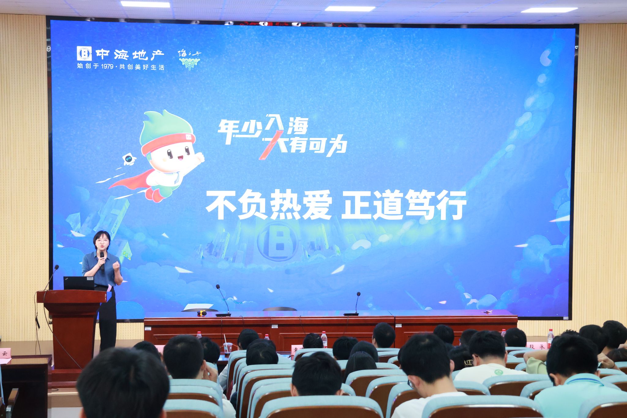 中海地产谢珺,结合个人基本经历、认知冰山模型与翔实的房地产行业相关数据调研,强调了能力提升和个人选择的重大意义,点明了中海地产目光长远与注重细节的企业特点,佐证了中海在逆势之下迎头赶上并成为行业领头的现状,鼓励同学们不要拘束于行业,相信同学们在各行各业都能大有可为,创下一番事业。