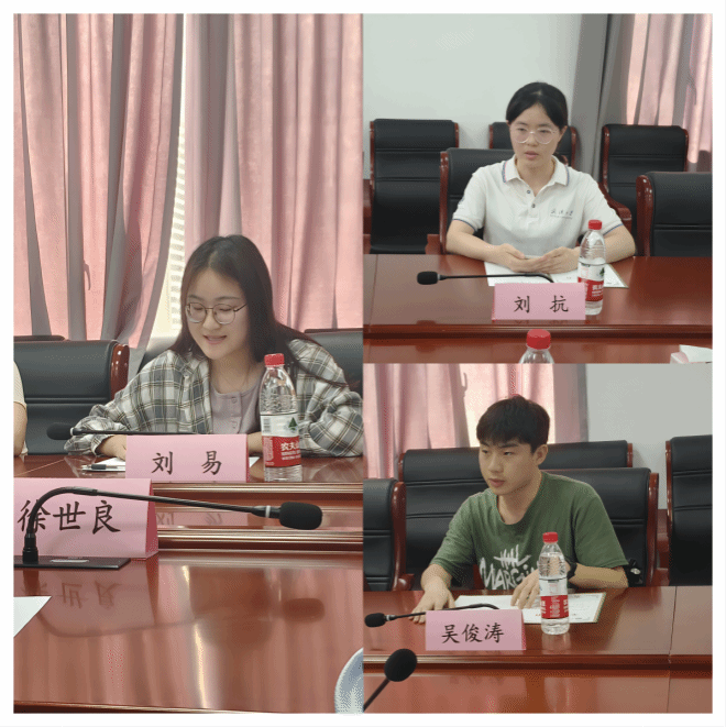 22级硕士研究生陈千石表达了对学院和两位评委领导的感谢,表示这是对自己科研学习和学生工作经历最好的奖励。他介绍了自己在课程学习、科研能力培养以及学生工作三个方面的成绩,特别介绍了自己担任院研会就业指导负责人一职,为同学们就业提供了帮助。