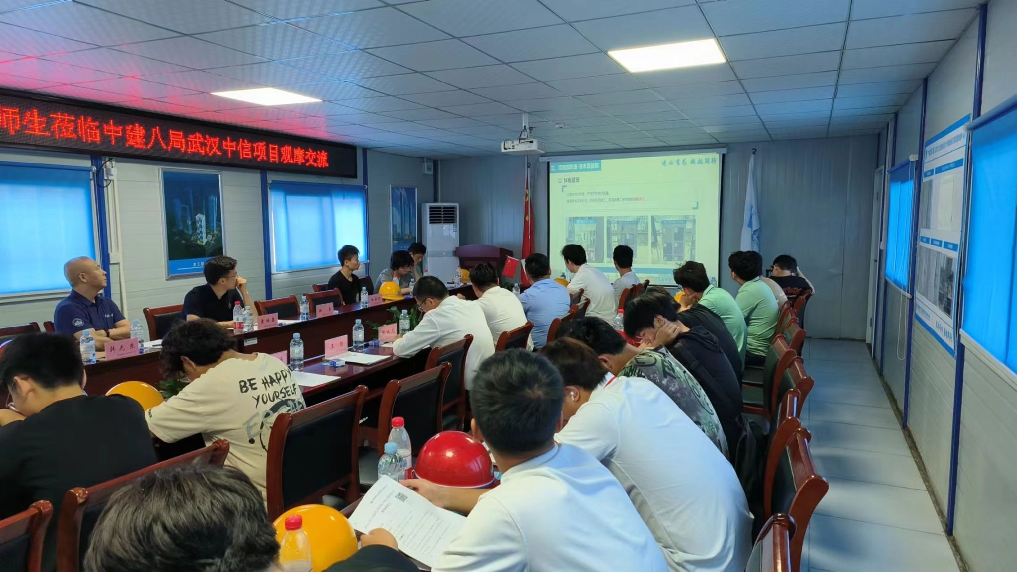12日上午,师生们来到了中建八局武汉核心商务区19号地块超高层项目的施工现场。同学们认真学习了主体结构以及装饰工程的施工过程和要点,了解了项目现场的智慧建造和管理系统。在工作人员的带领下,同学们还参观了项目部办公室、员工食堂和员工宿舍等。中建八局总承包公司第四分公司质量总监张双龙、办公室主任朱长玺向同学们介绍了中建八局的企业发展情况以及项目情况,中信19号地块项目技术经理、学院21届校友代表方毅从项目总承包的角度详细阐述了工程管理全过程,需要综合运用各种管理手段和方法,科学、高效地管理工程项目,确保项目顺利实施、圆满完成。