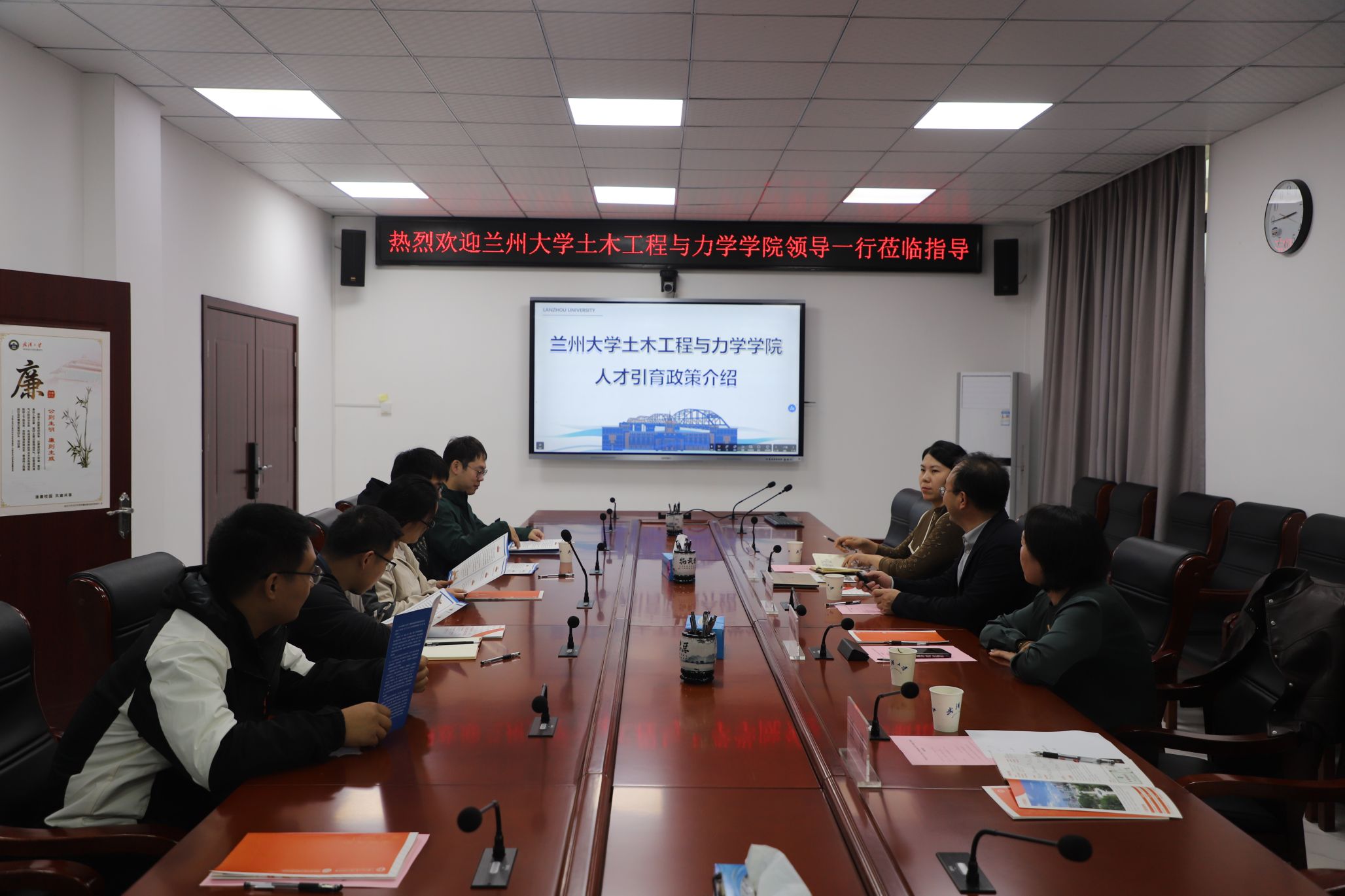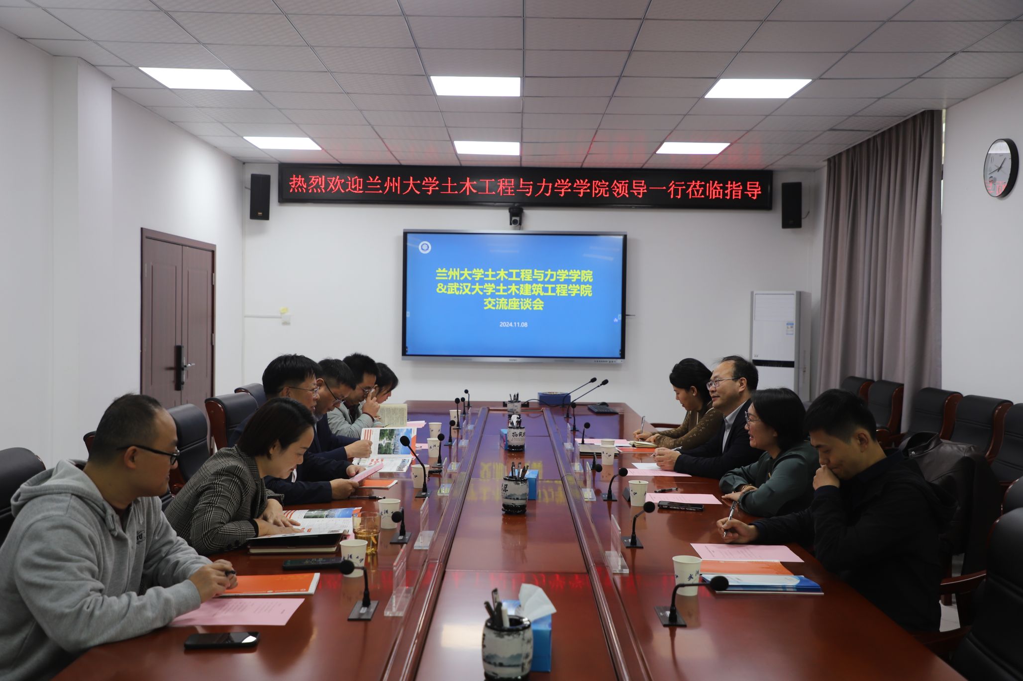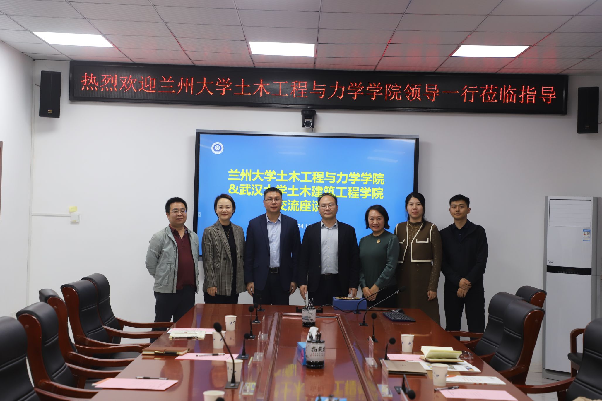 11月8日,兰州大学土木工程与力学学院党委书记韩伟、院长王记增、办公室主任王水存、科研秘书汪洋一行来Bsports官网进行调研交流,学院党委书记杨旭、院长吴志军、副院长肖娴娴、工程力学系教授王正直、党政办主任席睿、学生工作办公室兼职辅导员李云参加座谈。