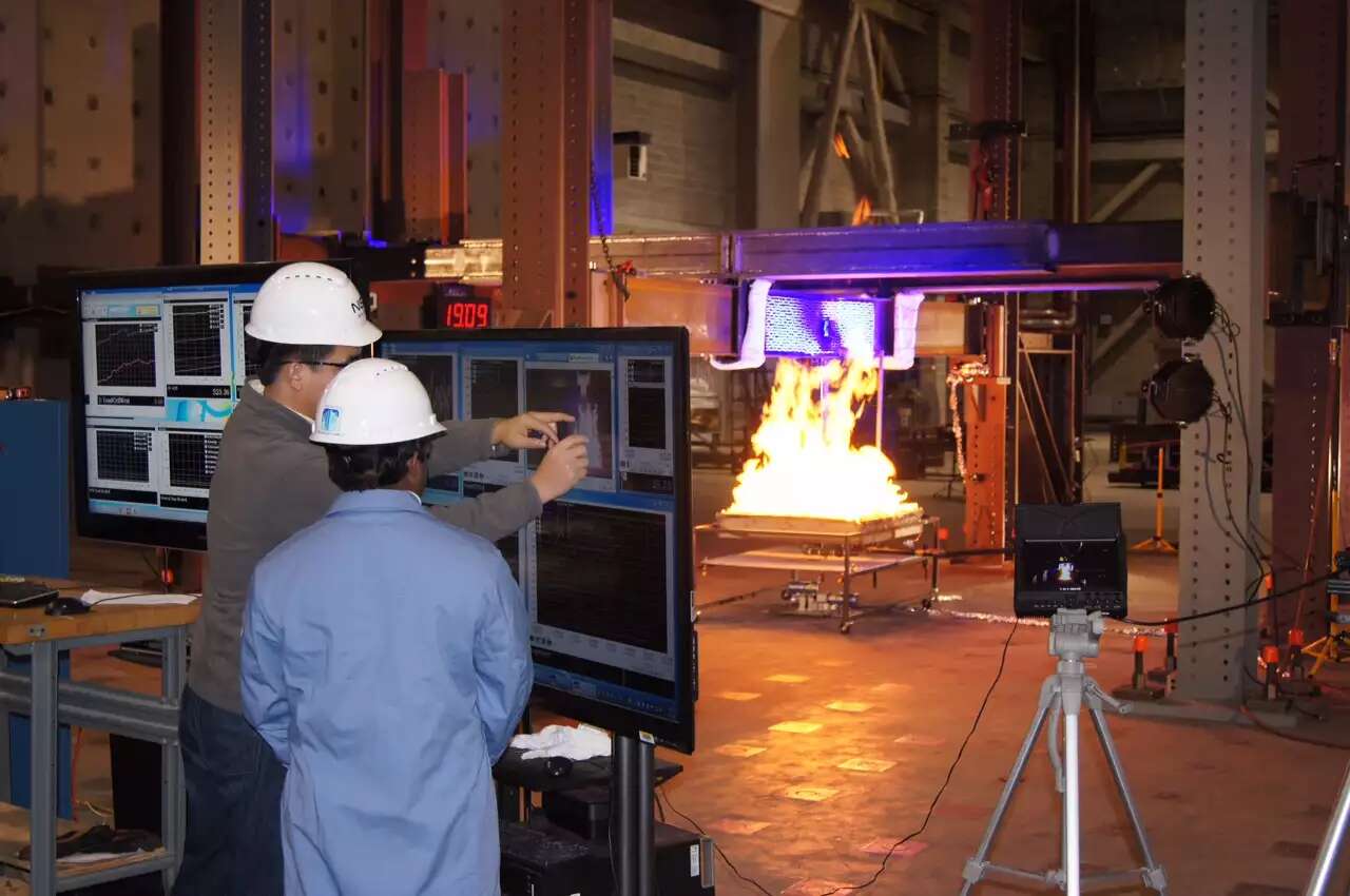 2016年张超教授(左一)在NIST开展结构局域火试验照片
