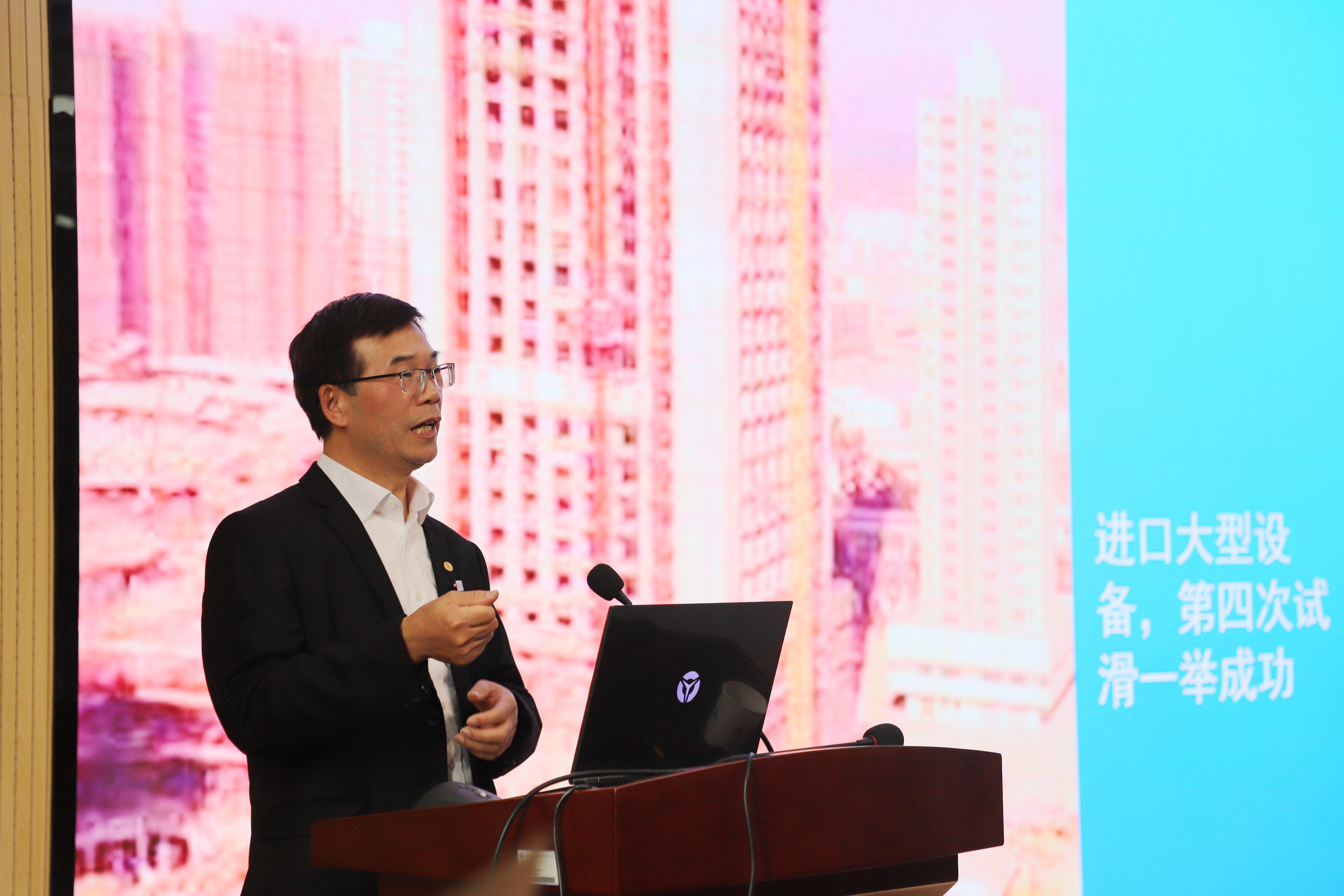 聘任仪式后,陆建新教授为现场师生带来“以奋斗创造幸福,以实干成就梦想”的主题报告。他以深圳特区发展历程为切入点,回顾了40年扎根施工一线的工作经历,再现了八十年代深圳国贸大厦、深圳发展中心大厦等标志性项目建造过程,分享了作为老一辈建设者一路走来的收获与成长。他表示,竹制工棚-纯人力施工到现代化、智能化建设施工技术的进步离不开土木人的坚持和努力,而中国建筑的未来发展需要更多新生代人才的加入。讲座反响热烈,互动问答频繁,得到了学校师生的高度评价。