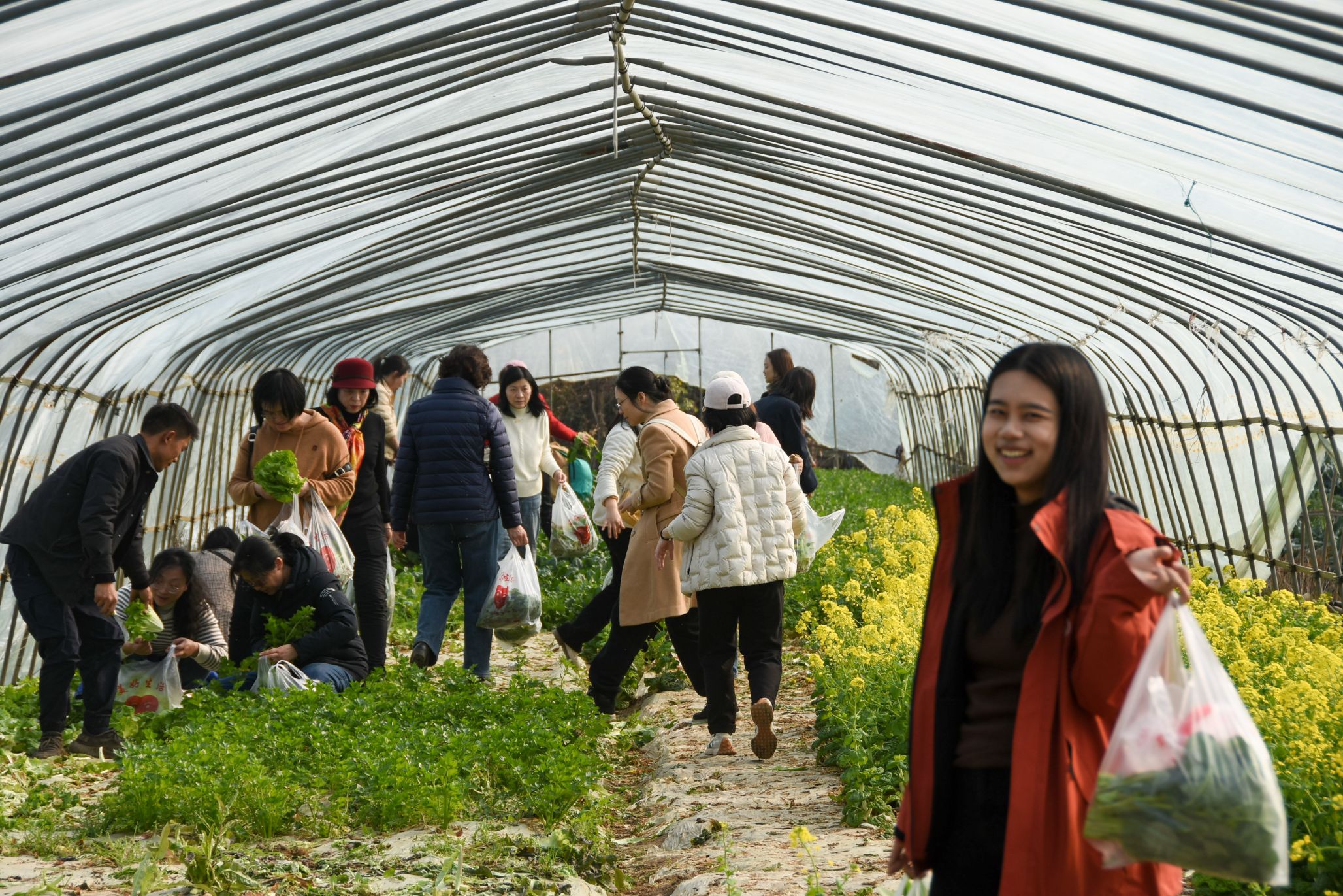 随后,老师们来到户外采摘果蔬。阳春布德泽,万物生光辉。大片大片的油菜花铺铺展展,浮花浪蕊,香气袭人。菜园里的蔬菜在阳光雨露的滋养下,蓬勃葱郁、长势喜人。