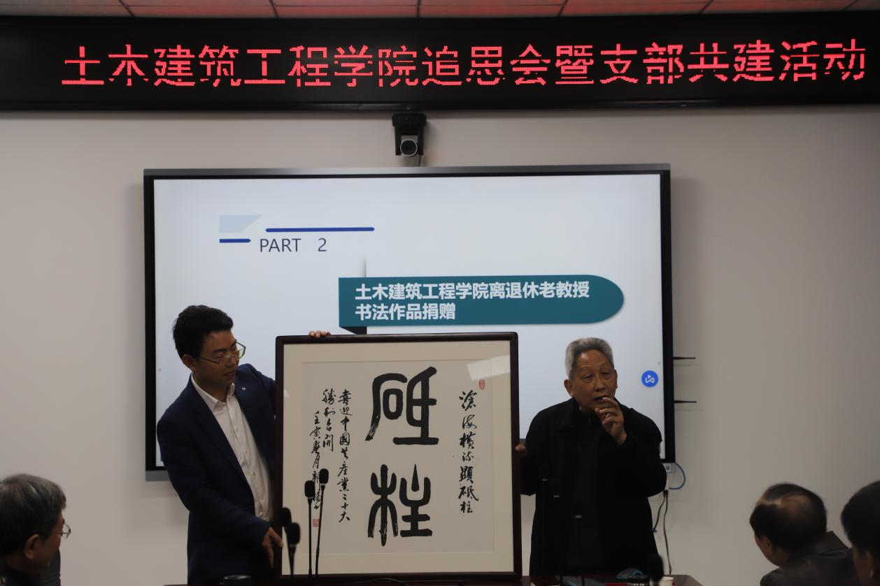 作为本次活动的重要环节,前任老协副会长李新福教授向Bsports官网捐赠了书法作品,并以生动形象的方式向大家讲解了自己创作的灵感来源,希望学院全体老师能够在立德树人和科研创新事业中发挥支柱作用。