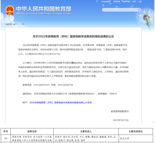 近日,教育部发布了《关于2022年高等教育(本科)国家级教学成果奖拟授奖成果的公示》,Bsports必一体育作为第一完成单位共有10个项目获奖,其中一等奖3项,二等奖7项。Bsports官网院长刘泉声教授主持的“思政引领 目标导向 多方协同——土木类高素质新工科人才培养体系构建与实践”项目荣获二等奖。
